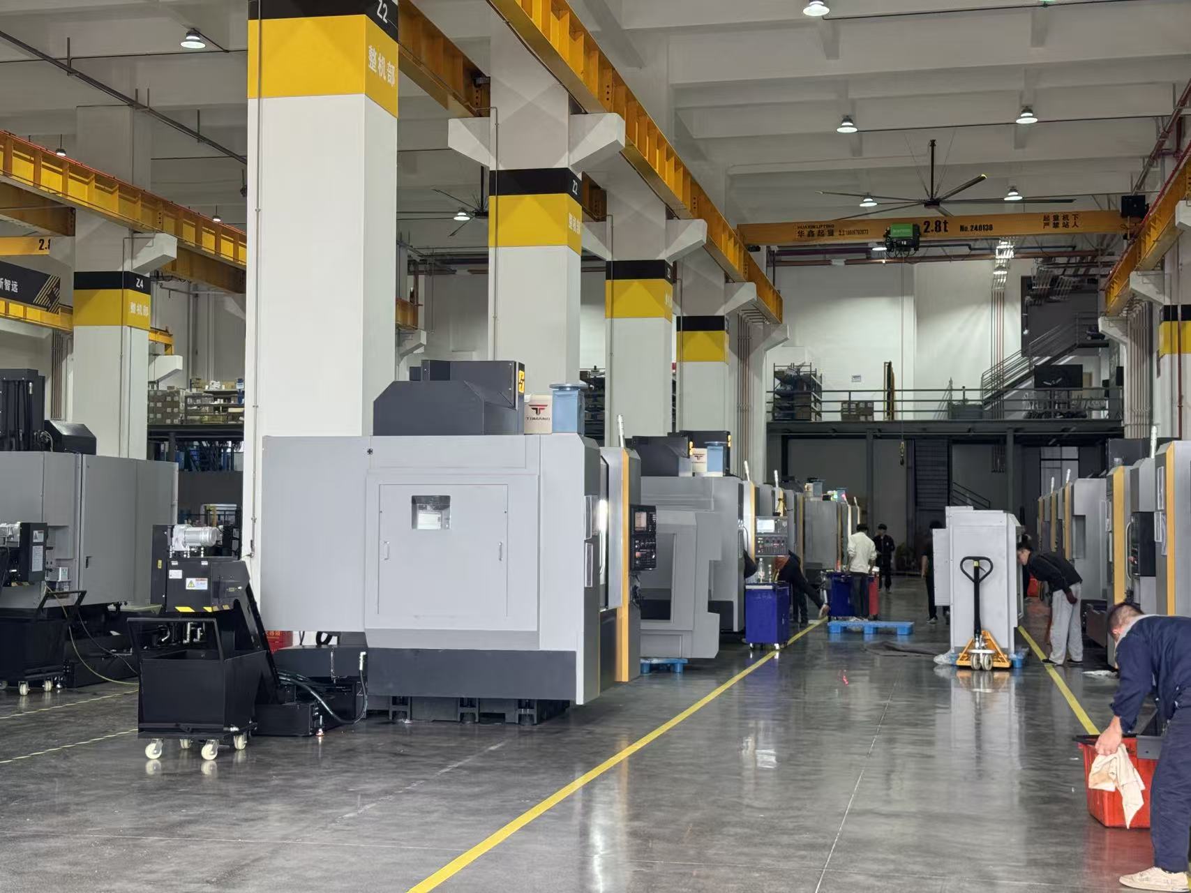江南数控机床有限公司新建数控智能装备产业园大楼内,工人在检修机器。